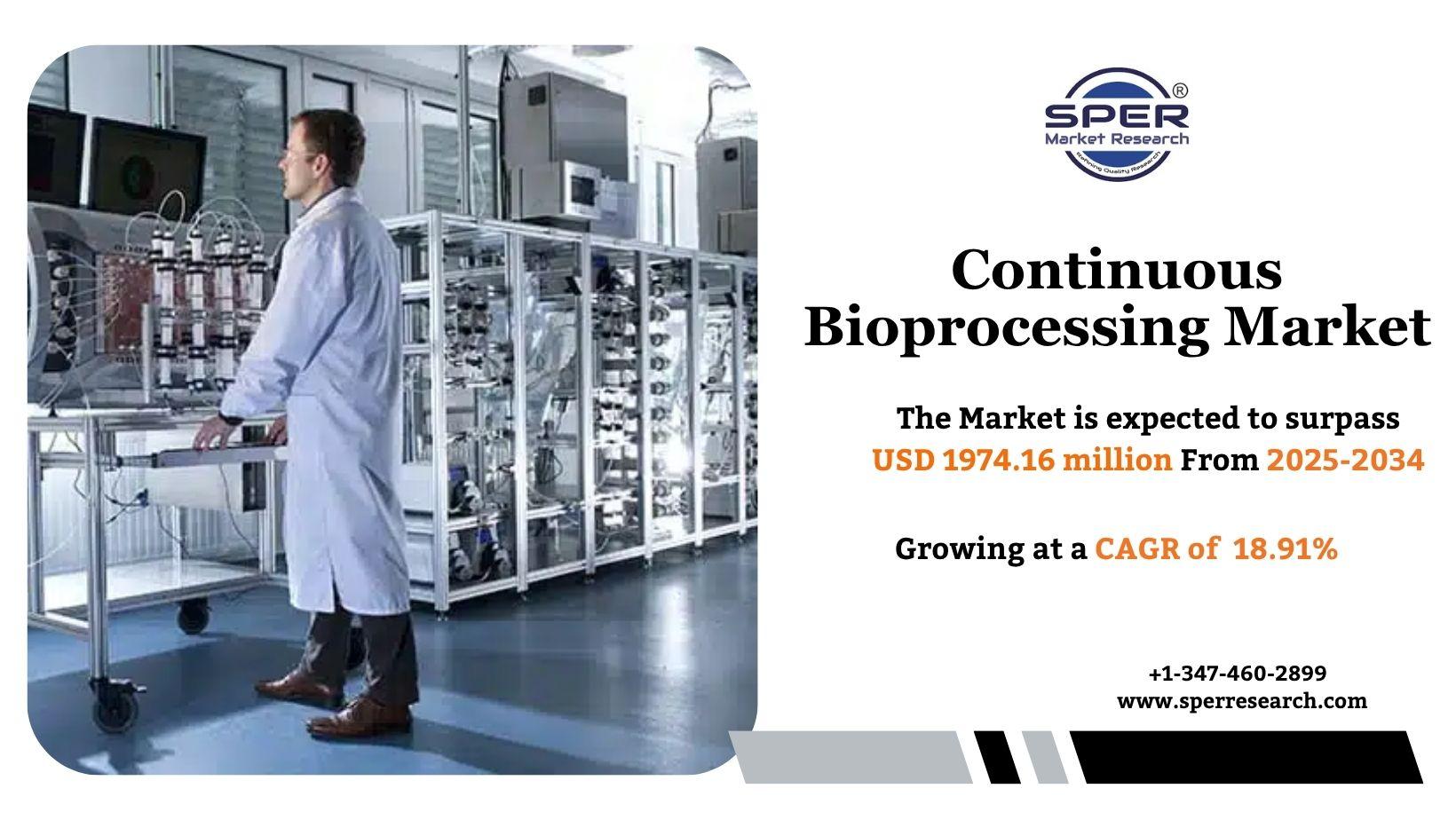 According to SPER market research, ‘Global Continuous Bioprocessing Market Size- By Product, By Application, By End Use - Regional Outlook, Competitive Strategies and Segment Forecast to 2034’ state that the Global Continuous Bioprocessing Market is predicted to reach 1974.16 Million by 2034 with a CAGR 18.91%.