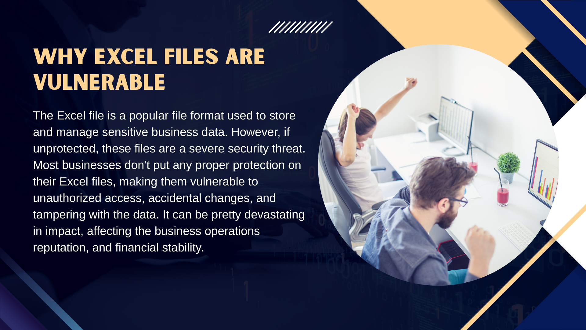 The Excel file is a popular file format used to store and manage sensitive business data. However, if unprotected, these files are a severe security threat. Most businesses don't put any proper protection on their Excel files, making them vulnerable to unauthorized access, accidental changes, and tampering with the data. It can be pretty devastating in impact, affecting the business operations up to reputation, and financial stability.