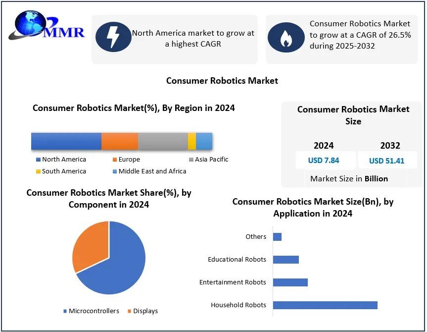 With an impressive projected growth rate of 26.5% from 2025 to 2032, the Consumer Robotics Market is set to expand significantly, reaching nearly USD 51.41 Bn. Advancements in AI, edge computing, and robotics hardware will continue to enhance functionality, affordability, and accessibility.
