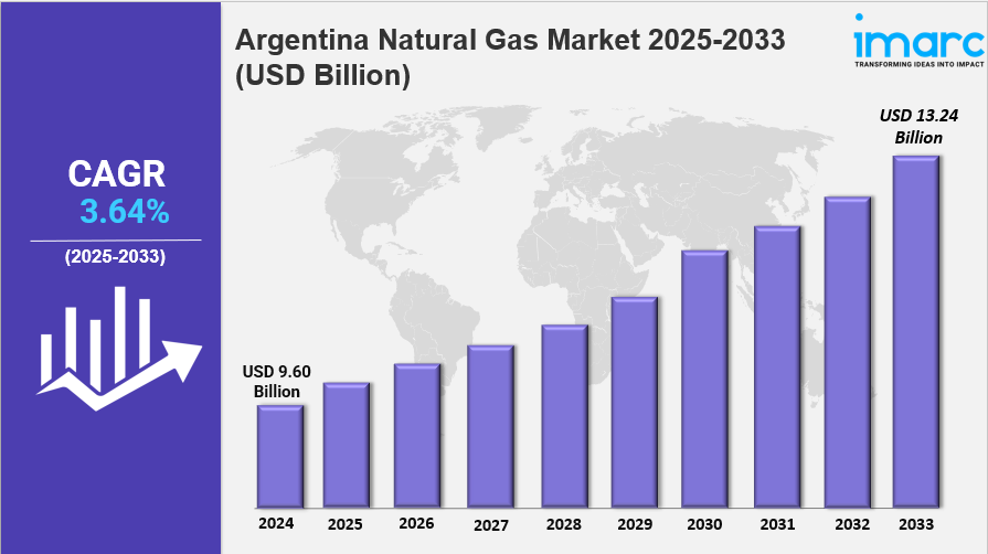 The Argentina natural gas market size is experiencing steady growth, supported by rising domestic consumption, expanding shale gas production from the Vaca Muerta formation, and continued investment in pipeline infrastructure. The market reached a volume of 9.60 Billion Standard Cubic Meters in 2024 and is projected to reach 13.24 Billion Standard Cubic Meters by 2033, exhibiting a growth rate (CAGR) of 3.64% during 2025–2033. Increasing energy demand across power generation, industrial, and residential sectors is strengthening the country’s natural gas production and distribution landscape.
