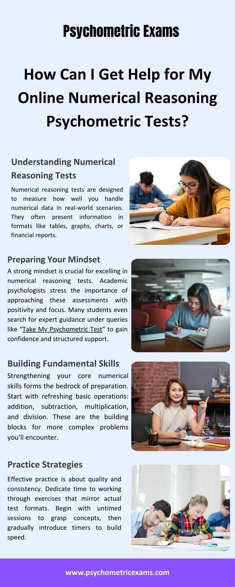 Struggling with assessments? Let experts Do My Online Numerical Reasoning Psychometric Tests and boost your chances of success. Our skilled professionals handle complex questions with accuracy and speed, ensuring you perform at your best in psychometric tests that employers rely on for hiring decisions.